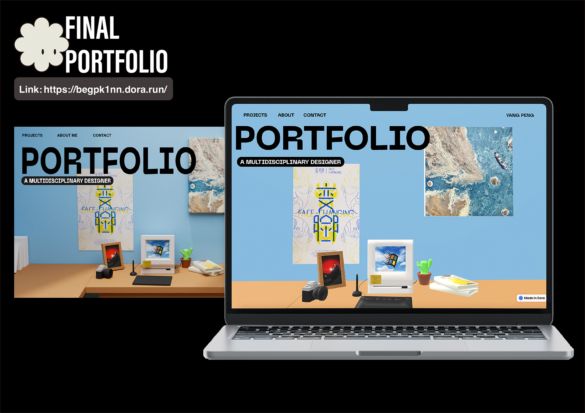 An experimental project exploring the potential of interactive 3D web experiences. This work investigates how spatial navigation, motion, and real-time interaction can be integrated into web interfaces to create a more immersive form of digital storytelling. Through prototyping and visual testing, the project examines the relationship between user interaction and three-dimensional space, pushing beyond conventional flat-screen web design.